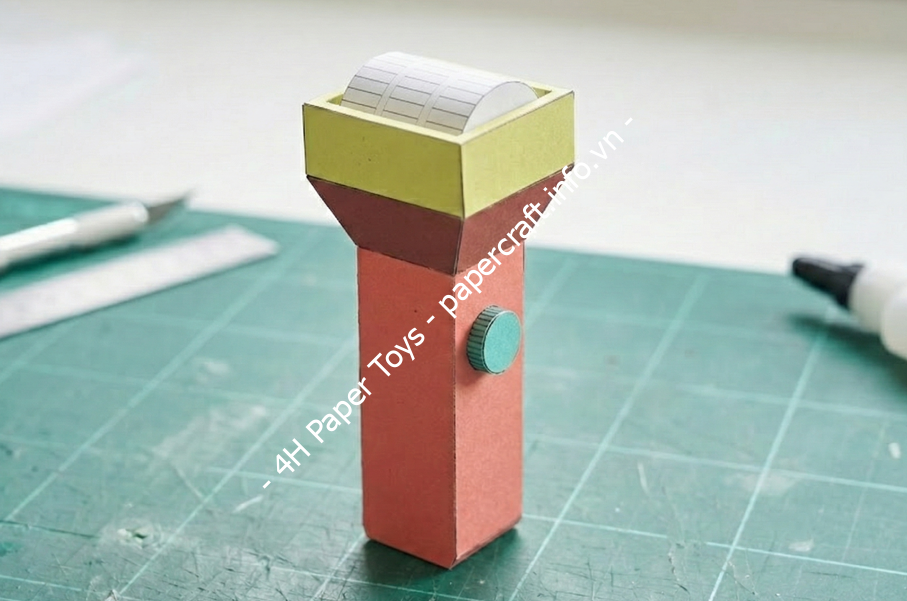1. Nâng cấp độ thật (Upgrade): Thay vì dùng mảnh giấy trắng làm mặt kính, hãy ra tiệm văn phòng phẩm mua một tấm bìa kính trong (Acetate sheet/Transparency film). Cắt nó theo kích thước mặt kính giấy và dán vào. Bên trong chóa đèn, hãy lót giấy bạc thực phẩm. Hiệu ứng phản chiếu sẽ khiến mô hình trông “xịn” hơn gấp 10 lần.