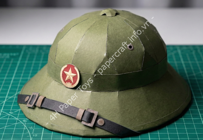 - Kỹ thuật uốn cong (Curving): Thân mũ và vành mũ có hình khối cầu và hình nón cụt. Nếu không uốn giấy thật kỹ trước khi dán, mô hình sẽ bị gãy cạnh (boxy), làm mất đi vẻ tự nhiên của chiếc mũ cối.